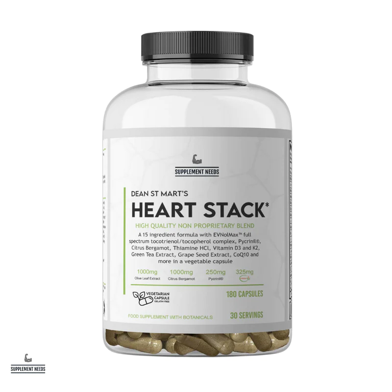 Heart Stack (Formerly C-V Stack) is a fully transparent, non proprietary product containing 15 ingredients at efficacious doses as part of the Supplement Needs Dean St Mart Health range.